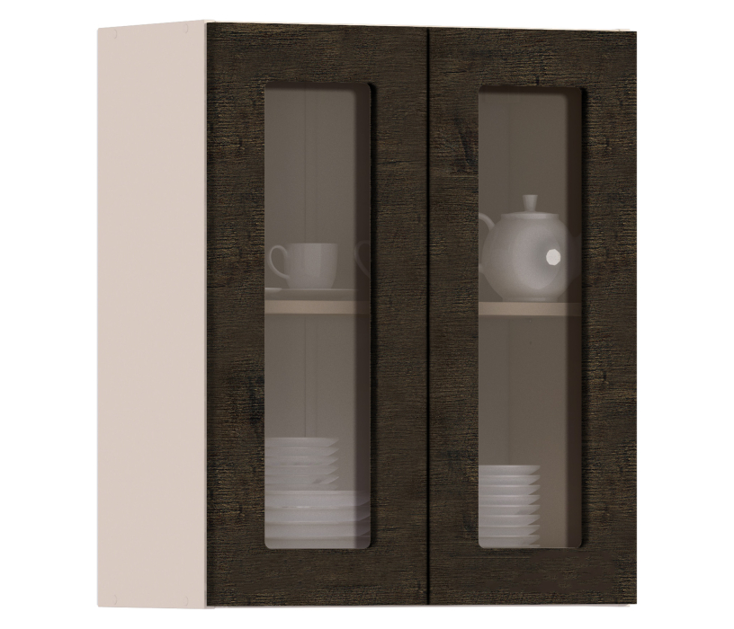 Регина шкаф навесной со стеклом 2 дв 60х72 см (Акация темная)