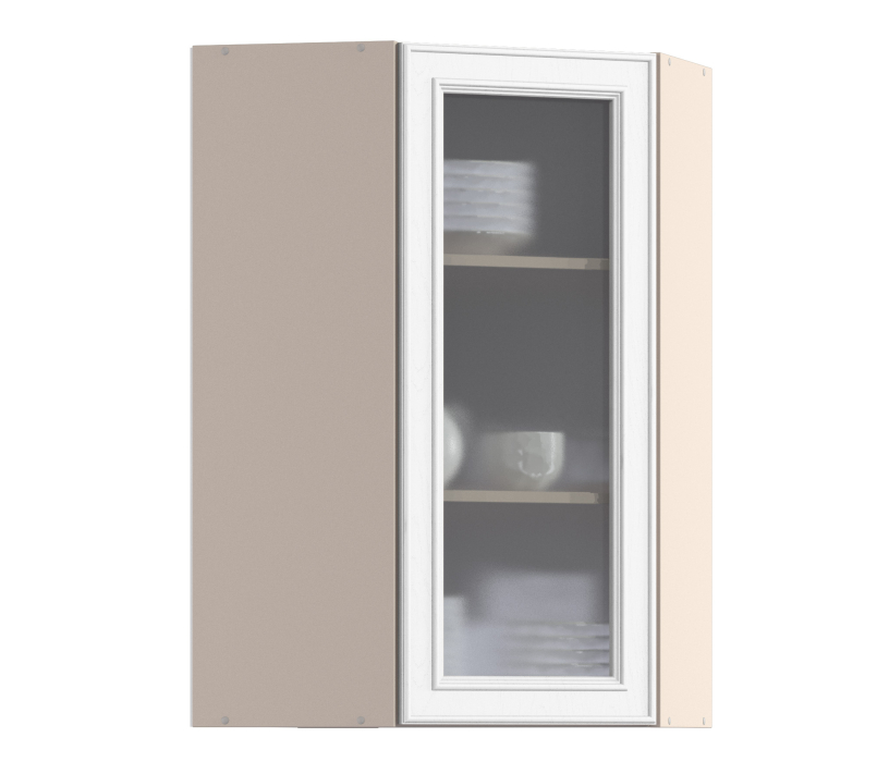 Регина РПУ-160 Полка угловая с фасадом-витриной Песочный/МДФ Классика белый Код 00000294559