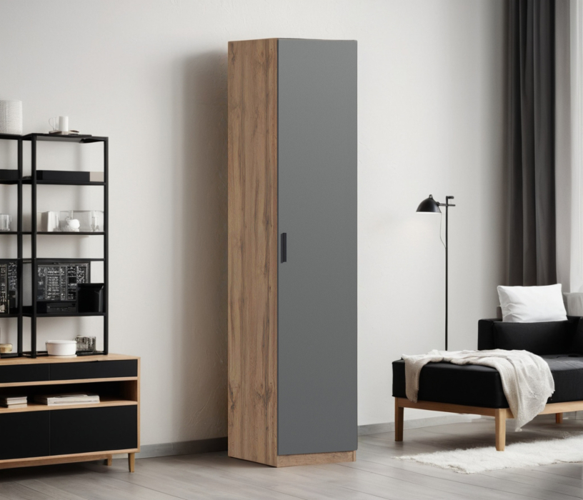 Шкаф однодверный Макс 500 мм, вариант №5 (ЛДСП, корпус дуб вотан) (Дуб вотан/Диамант серый)