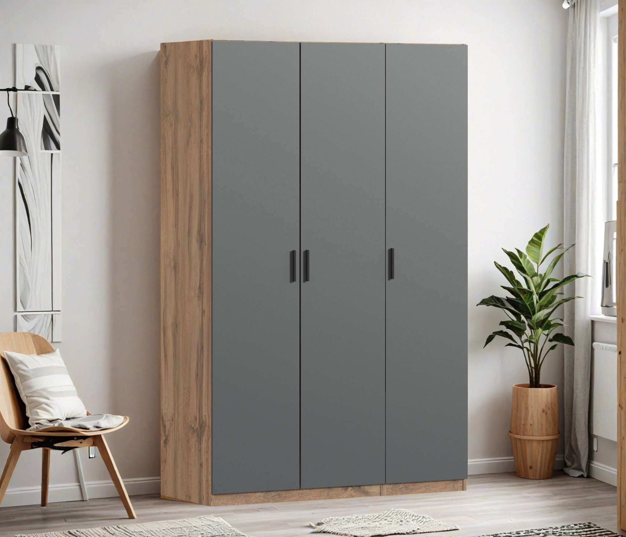 Шкаф трехдверный Макс 1500 мм, вариант №4 (ЛДСП, корпус дуб вотан) (Дуб вотан/Диамант серый)