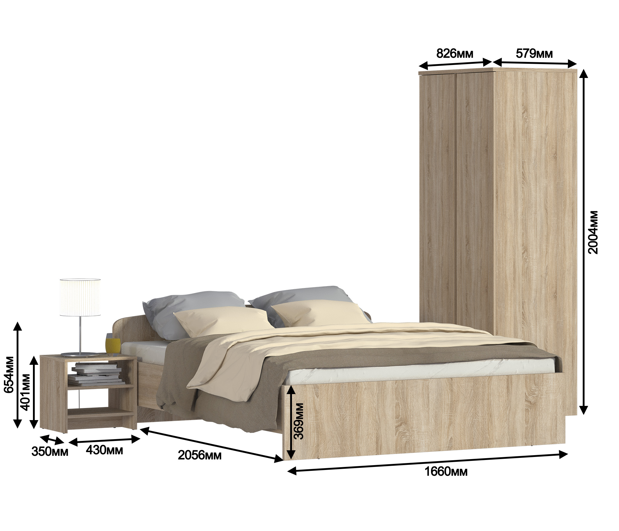 Кито Дуб сонома Комплект (тумба+кровать1600+шкаф) (Дуб Сонома)