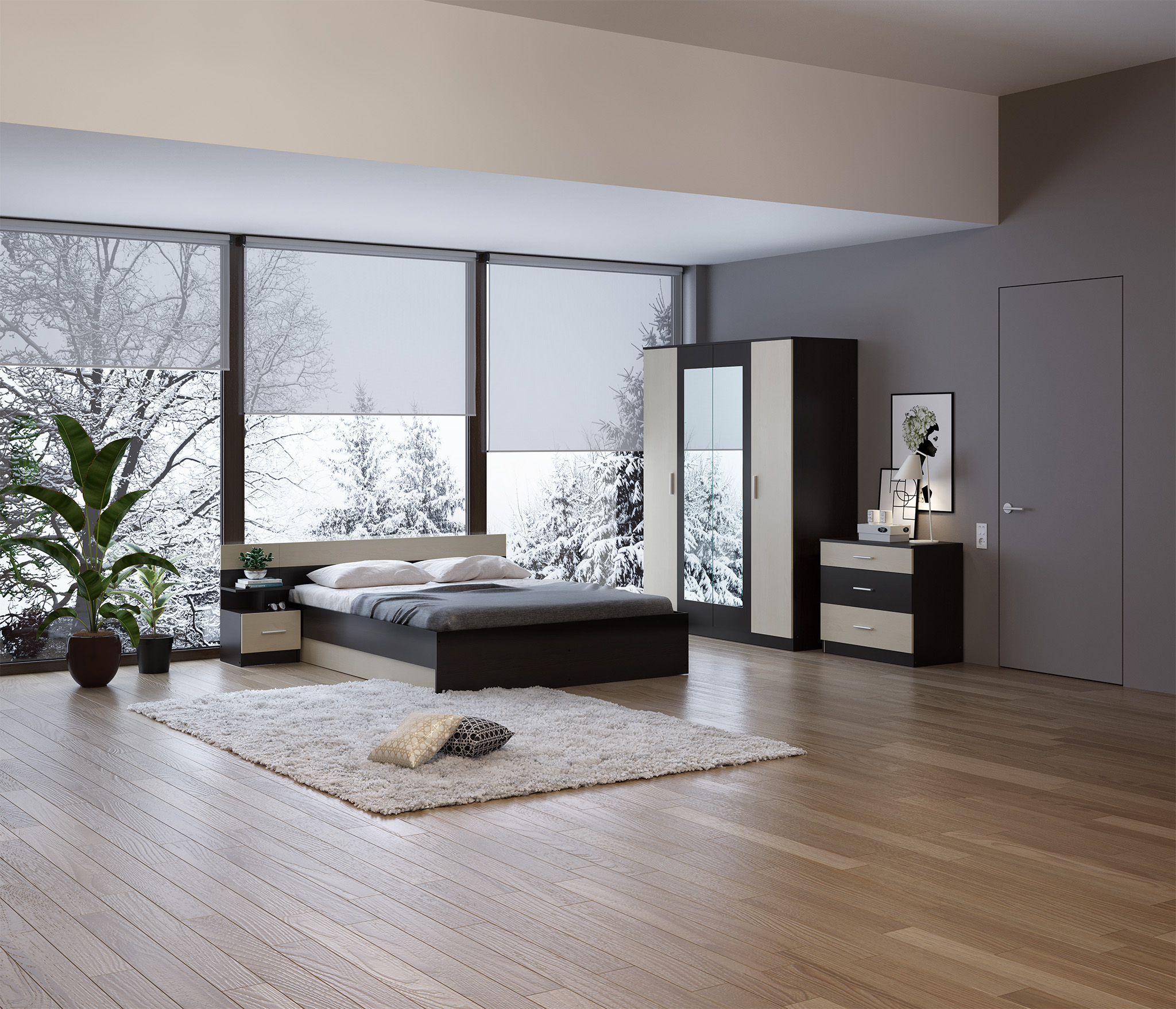 Отличная и очень бюджетная спальня полноценная, качество соответствует цене, поэтому не стоит брать во внимание качество фурнитуры и тд.. мы исходили из цены и своих денег мебель определено стоит! Одно но, что в темном цвете, достаточно маркая, но это обычное дело для тёмной мебели. Шкаф невысокий, имейте ввиду, не везде будет гармонично смотреться, но достаточно просторный и вместительный!