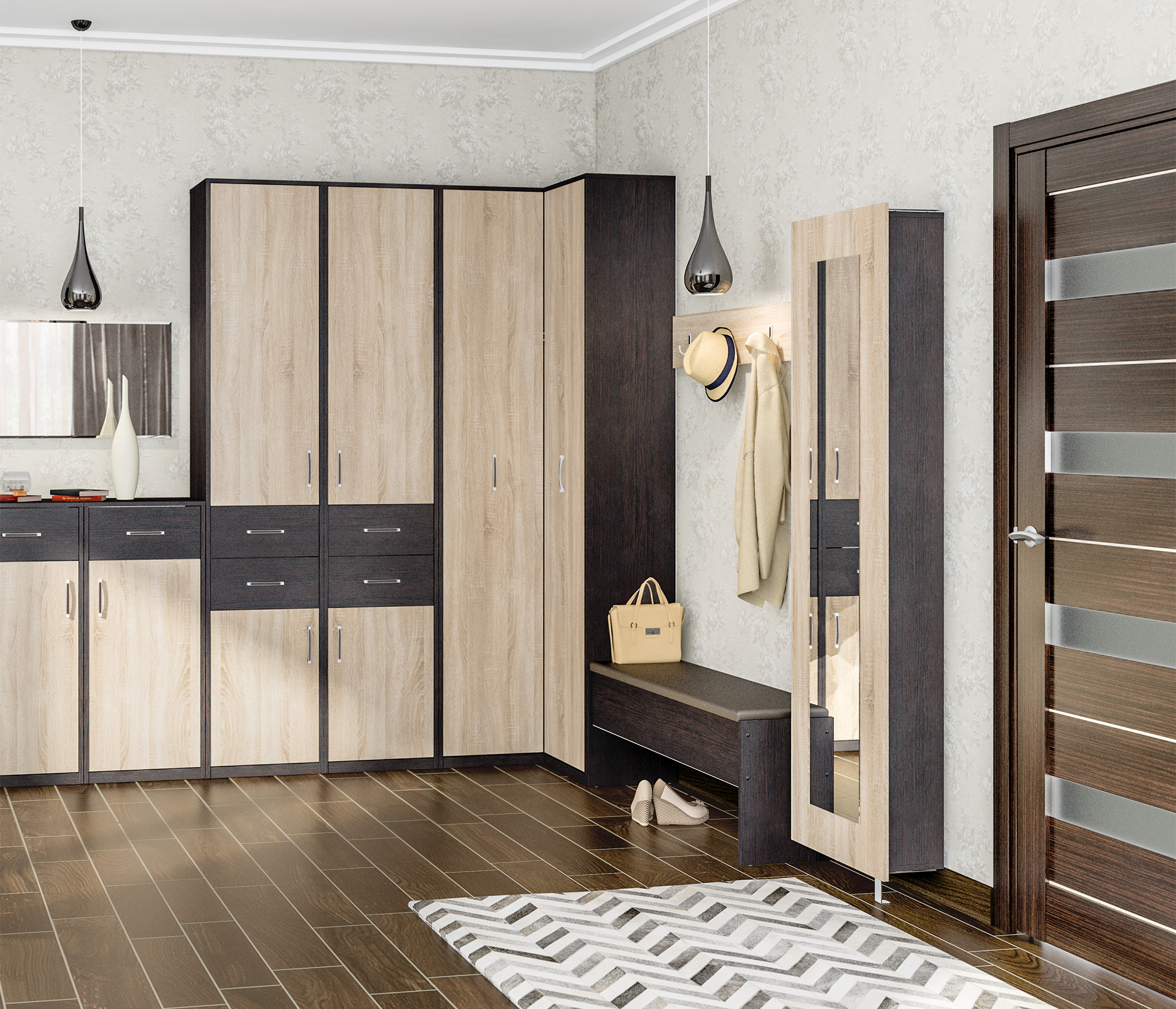 Шкаф угловой Афина СБ-2233 (Венге/Дуб Сонома)