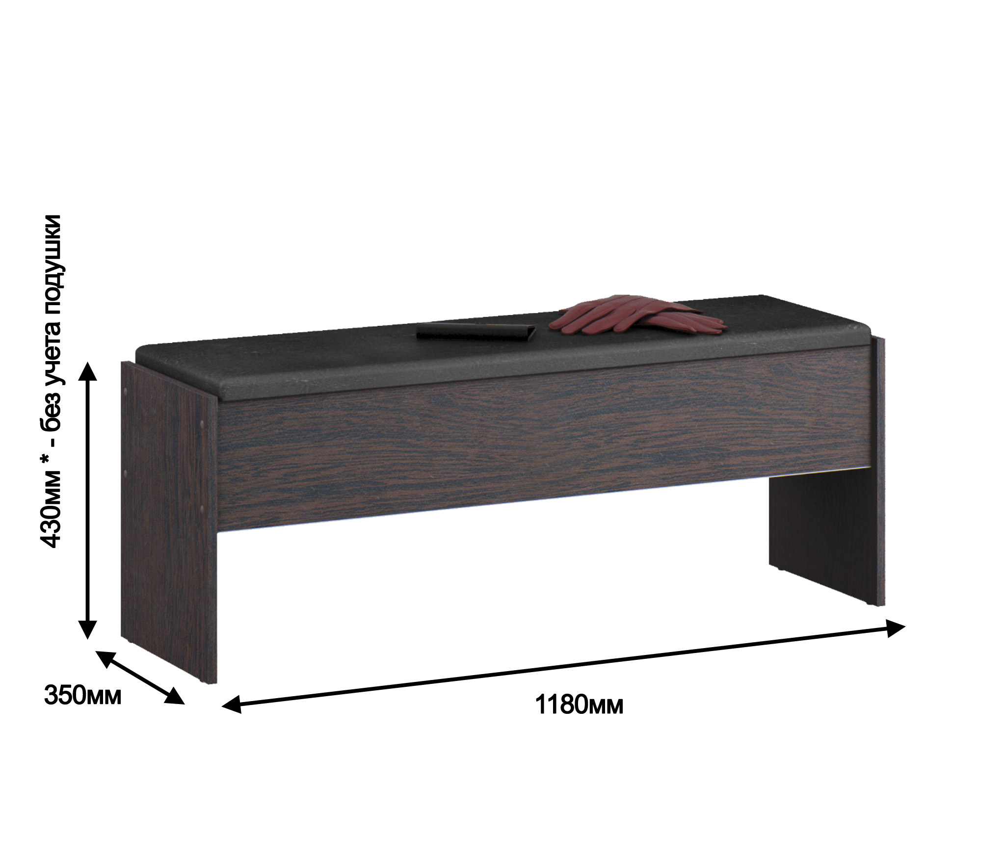 Корпус из КДСП, сиденье обтянуто искусственной кожей. Под сиденьем вместительный ящик для мелочей.