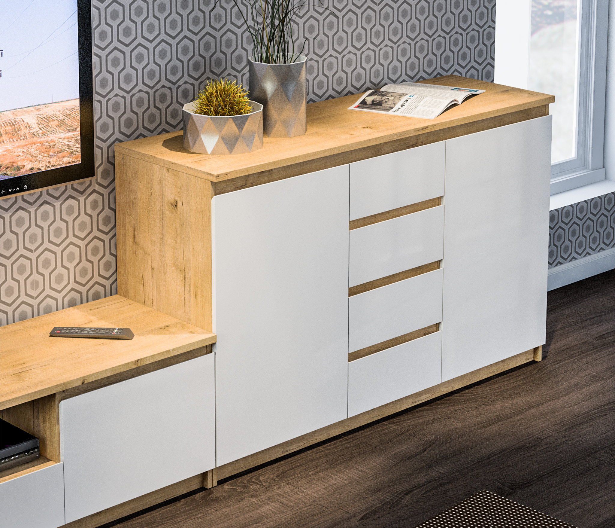 Комод Веста СБ-2254 (Белый/Дуб Бунратти)