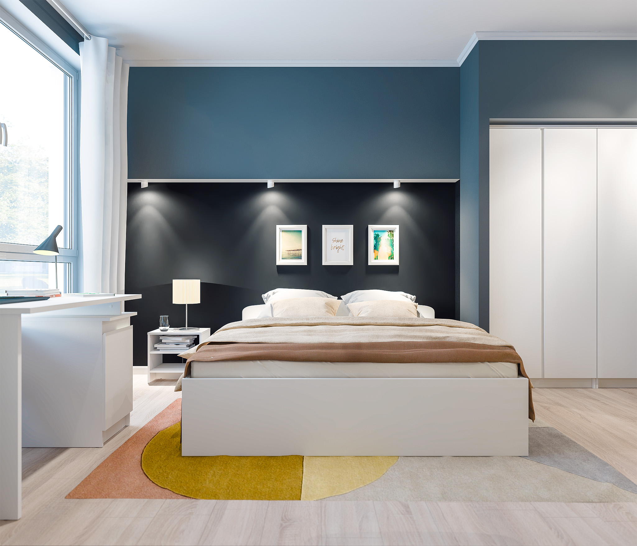 Спальня Кито (кровать+шкаф+тумба+стол) Белый (Белый)