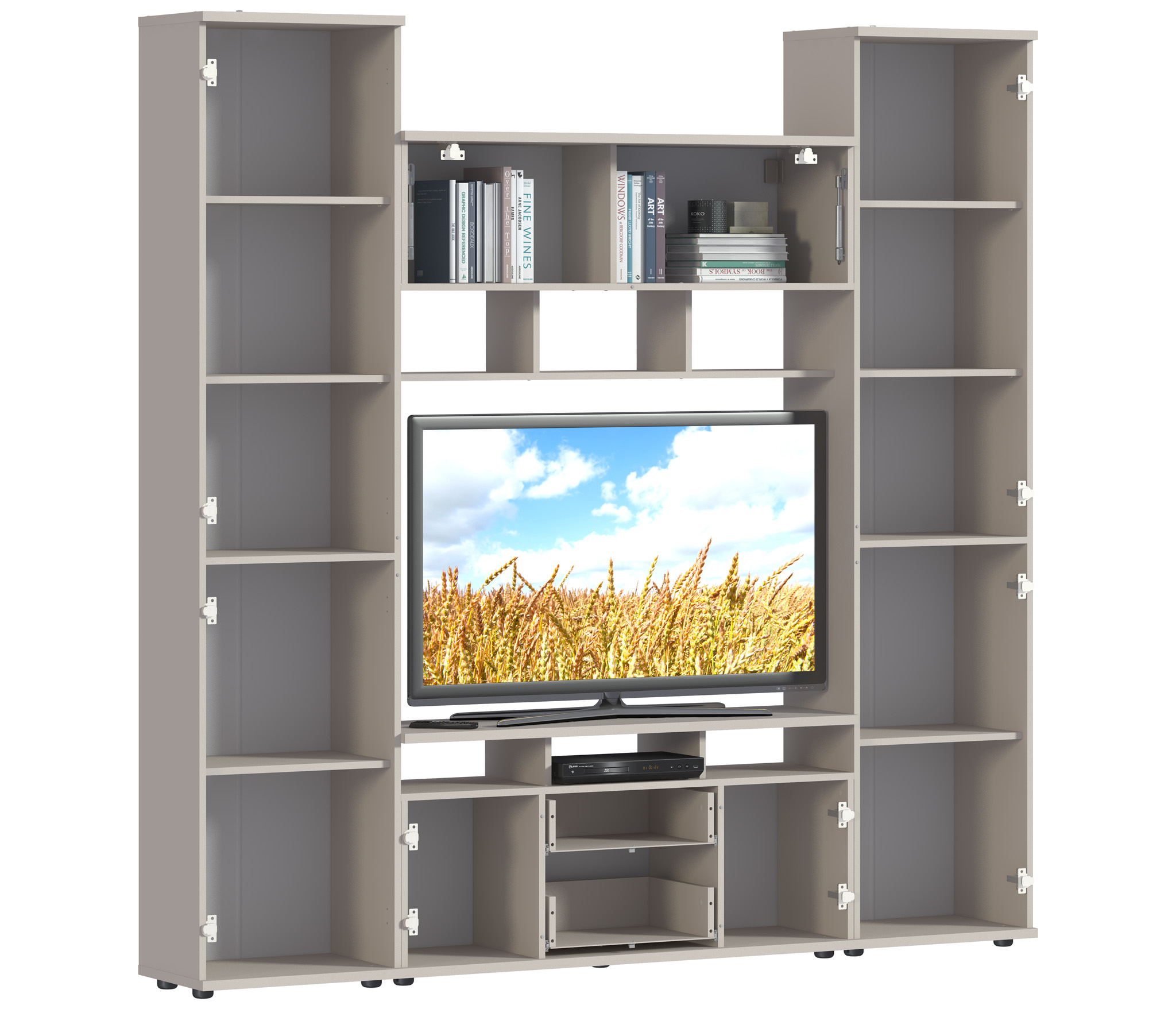 Купила набор для своей небольшой квартирки. Вместилось все без проблем, выкинула все старые тумбы и серванты. Теперь все в едином дизайне, приятно смотреть и пользоваться.