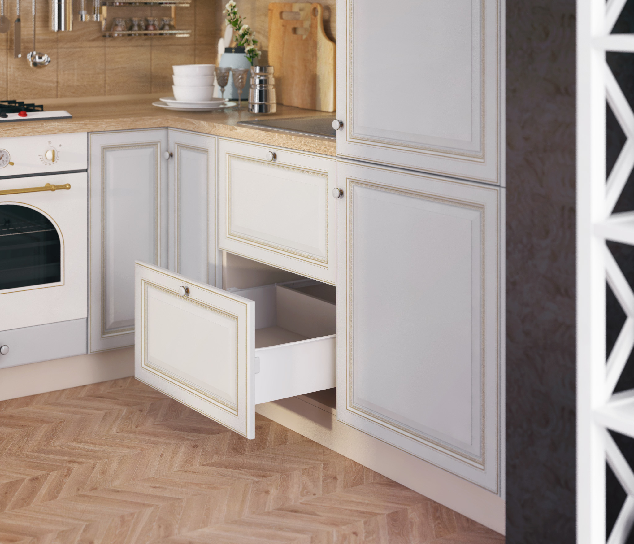 Обратите внимание: аксессуары, бытовая техника, мойка и сушка для посуды в комплект не входят, их необходимо приобретать отдельно.