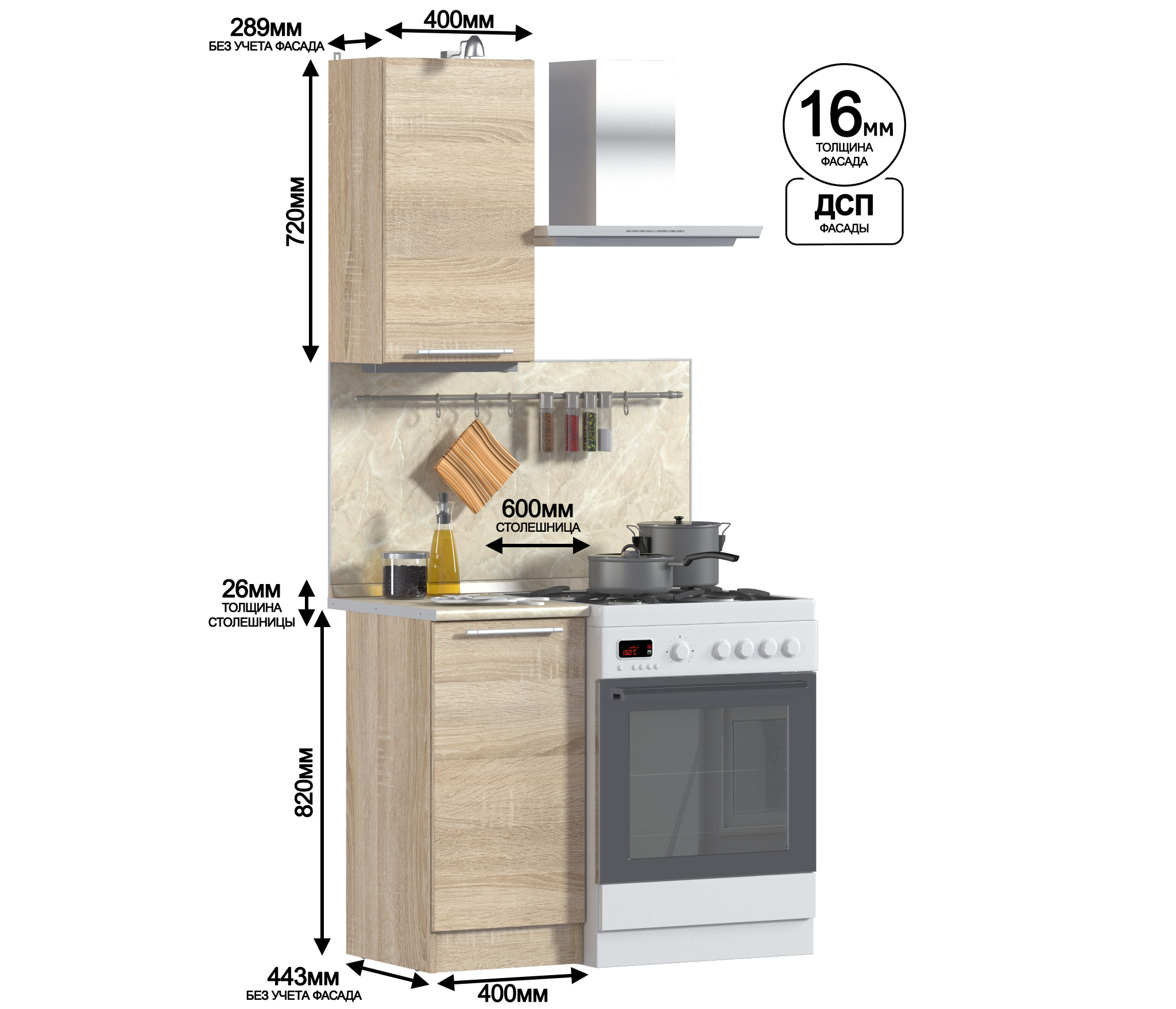 Кухонный гарнитур Ангелина Классик Дуб Сонома 40 см (Дуб Сонома)