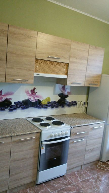 Кухня покупалась для съемной квартиры! Фото после установки, даже с нестандартной плитой можно найти выход, как представлено на фото, высота плиты тоже будет подниматься до уровня столешницы, после небольших регулировок и косметического ремонта, кухня будет смотреться шикарно, да и за такую цену это просто бомба !👍