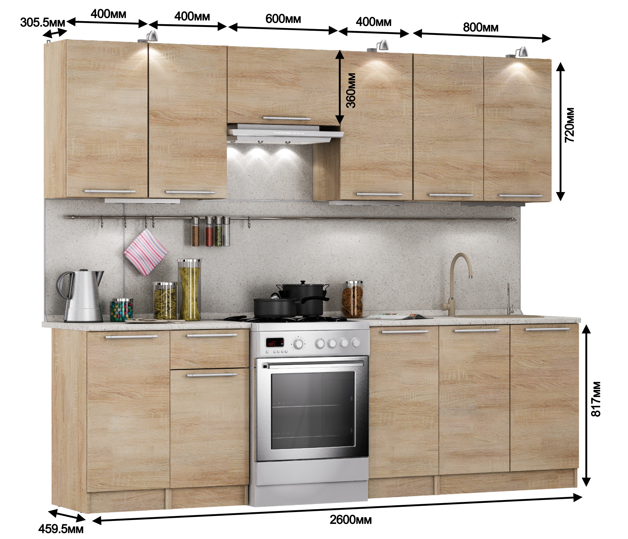 Кухня Ангелина Классик Дуб Сонома 2,6 м (Дуб Сонома)