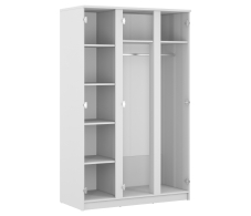 Трехдверный шкаф Медея СБ-2493 – универсальная система хранения. Благодаря современному минималистичному дизайну, шкаф будет одинаково органично смотреться в интерьере прихожей, спальни, гостиной или кабинета. Шкаф является предметом из модульного гарнитура Медея. Габаритные размеры – ширина 125 см, высота 200 см и глубина 57 см. Шкаф имеет два отделения – большое, шириной 83 см со штангой для развешивания верхней одежды. Отделение шириной 41 см оснащено пятью вместительными полками, где можно разместить множество вещей. Над большим отделением размещена антресоль. Центральная дверь оснащена большим зеркалом. Выполнен шкаф из прочного современного материала с отделкой в сочетании белого глянцевого и белого матового цветов.