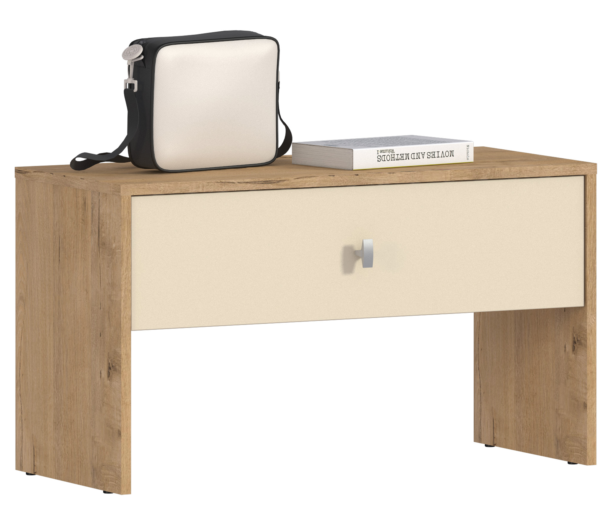 Тумба «Сидней» выполнена в сочетании темного и светлого оттенка и замечательно будет гармонировать с интерьером Вашей комнаты. Фурнитура ящика представлена в виде аккуратной ручки. Тумба с вместительным выдвижным ящиком.