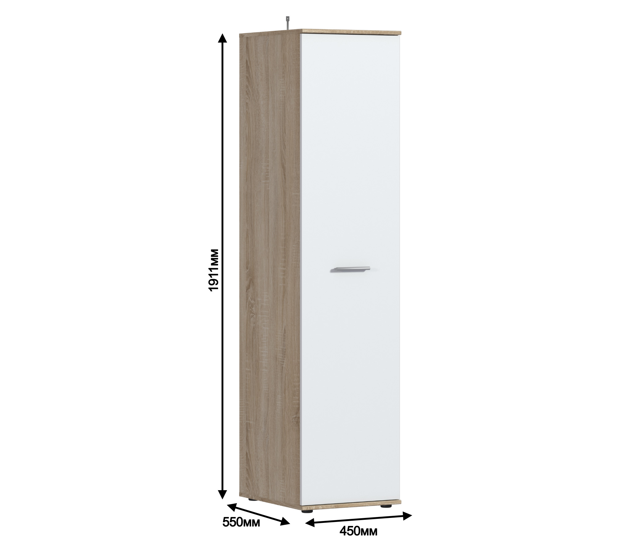 Шкаф 1 дверный Мамбо СБ-2677.Н (Дуб Сонома/Белый)