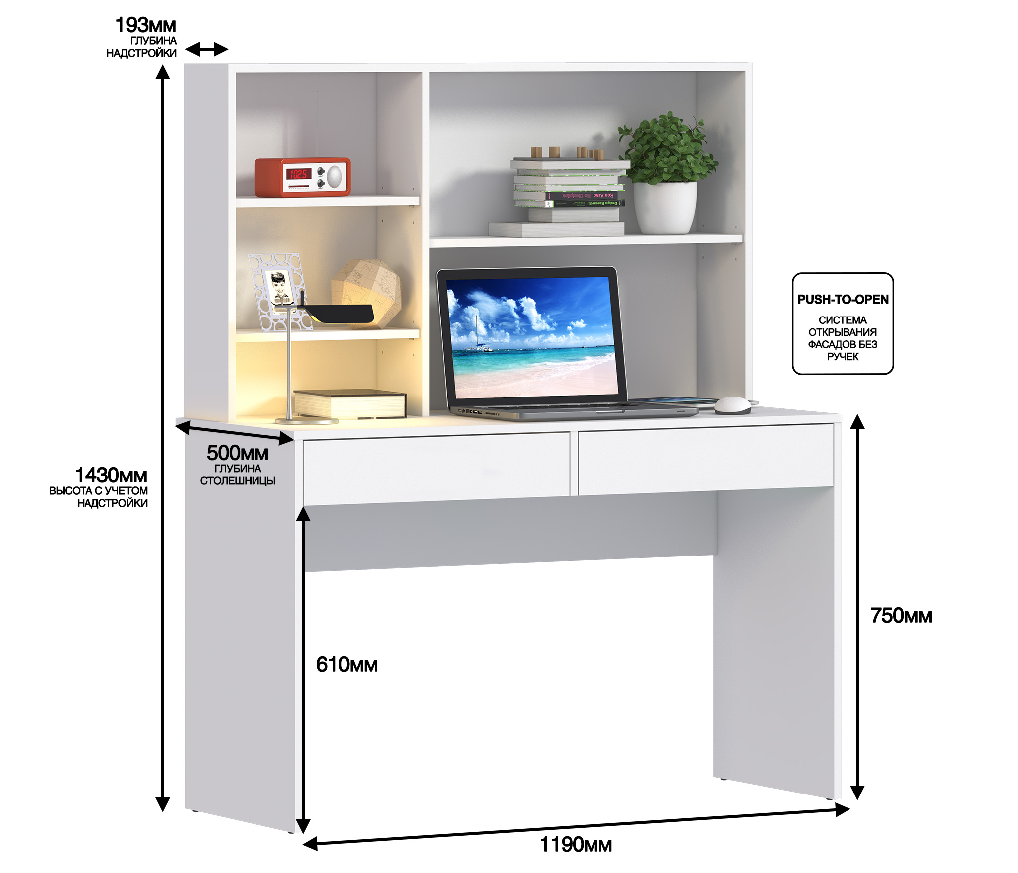 Терра СБ-3213 Стол Белый механизм открывания push (Белый)