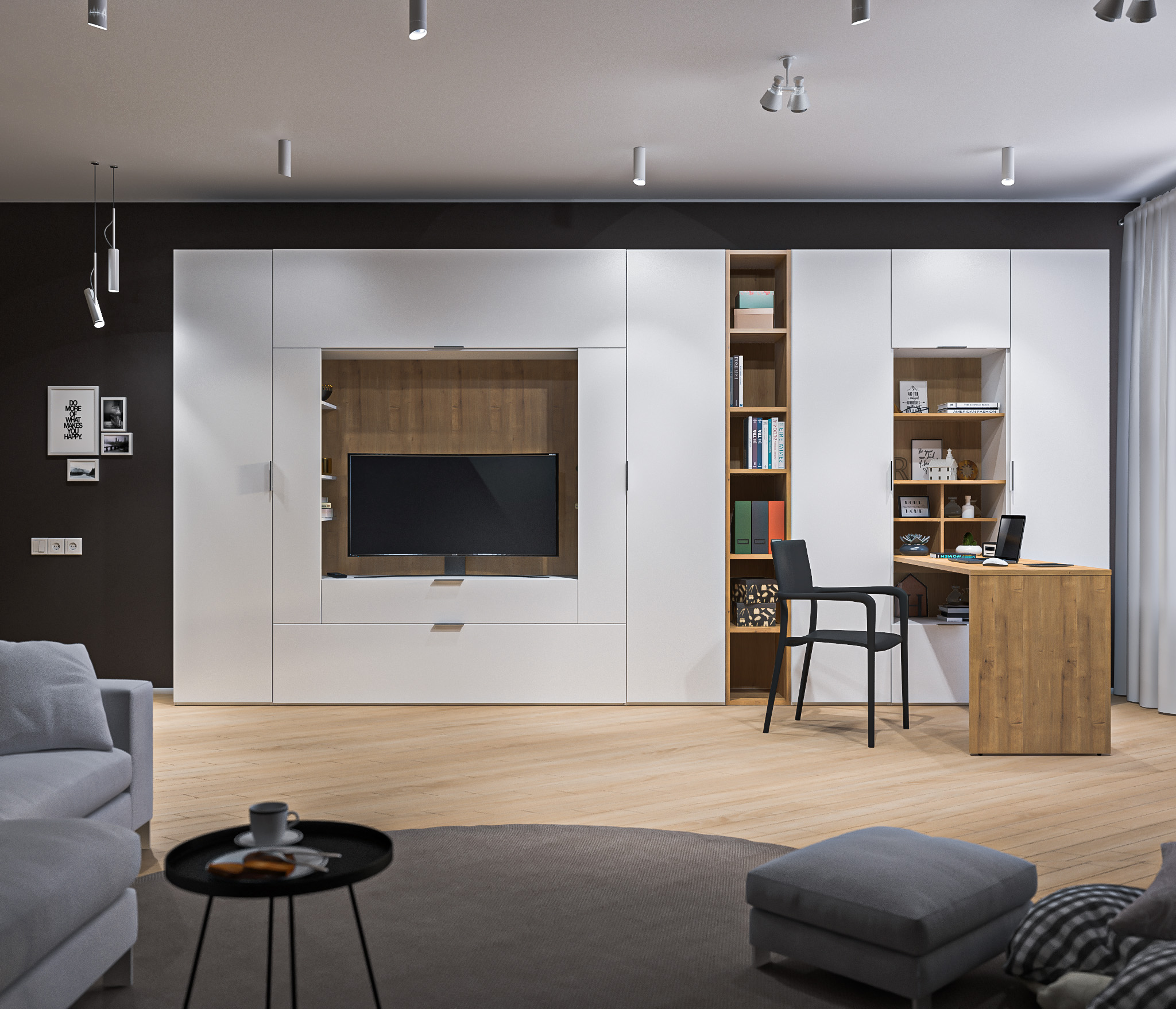 Гостиная с рабочим столом Мальта (Белый,Дуб Гамильтон)