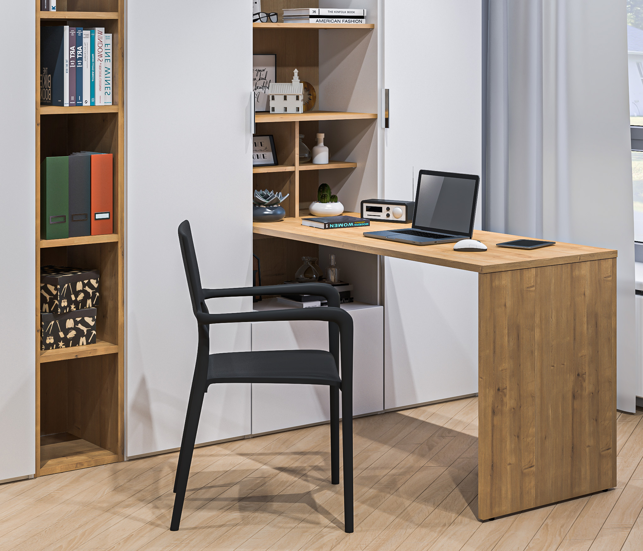 Материал корпуса: ЛДСП цвет Белый Альпийский, Дуб Гамильтон натуральный.