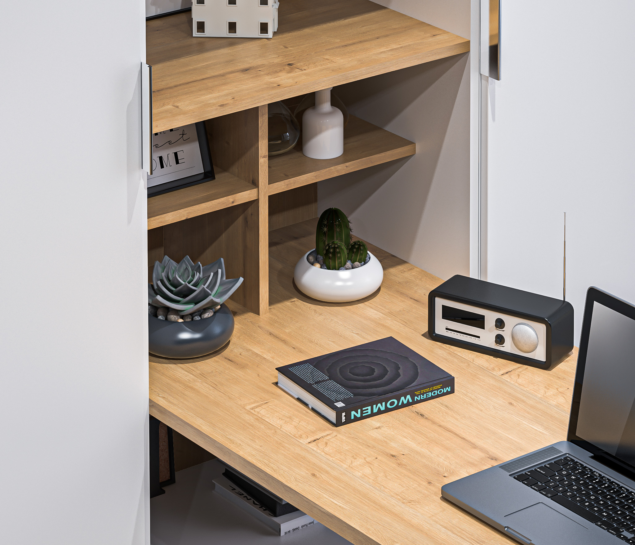 Мальта СБ-3261/1 Стеллаж со столом Белый,Дуб Гамильтон/МДФ Белый