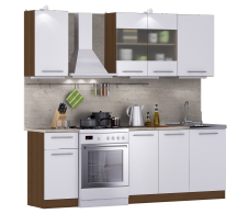 Кухонный гарнитур Элен 2,3 м (2,2 м) Вишня Мадера/Белый глянец ПОД КЛЮЧ (полный комплект) (Вишня Мадера/Белый глянец)