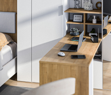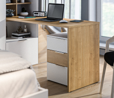Мальта Спальня кровать с подъемным механизмом, рабочий стол (Белый,Дуб Гамильтон)