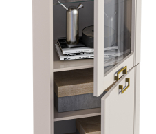 Золотистые ручки и ножки коллекции "Ассоль" добавляют неповторимый шик и изысканность, завершая образ тонким и стильным блеском. Эти акценты создают атмосферу роскоши и утонченности. Они играют роль визуального украшения, дополняя общий вид мебели и придавая ей особый шарм и элегантность.